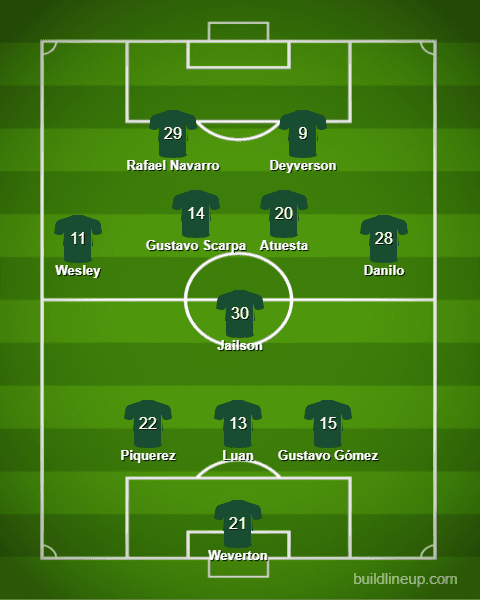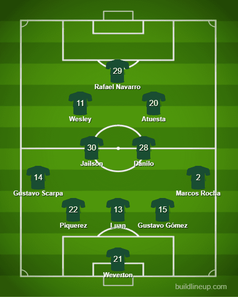 Wesley entrou no lugar de Rony; Atuesta no de Raphael Veiga.